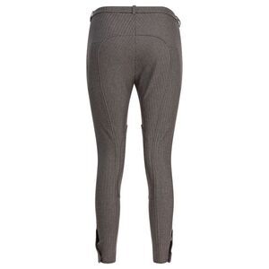 Burberry "Jodhpur" pants made of stretch cotton with herringbone pattern construction. The fitted construction follows a sharply cut silhouette with an elasticized mid-rise waist and hook-and-zipper closure. Technical details include snap buttons at the leg bottom and belt loop decorated with Equestrian Knight Design plaque in an antiqued finish. The design references equestrian clothing, emphasizing functional and structural elements.
