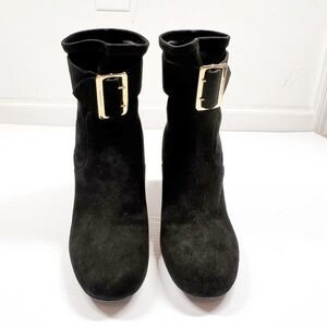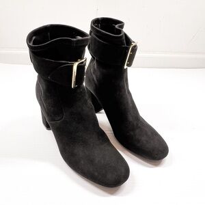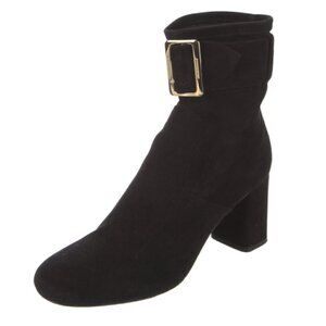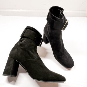 Burberry Women's 10 Britannia Buckle Block Suede Black Heel Buckle Booties