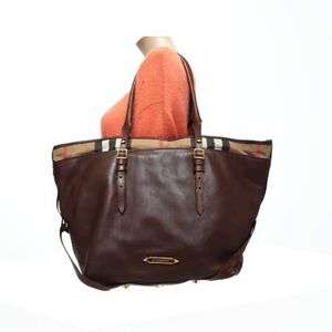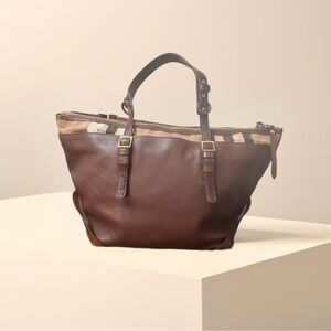Burberry Women’s Brown Leather Tote Handbag Purse Made in Italy 100% Authentic