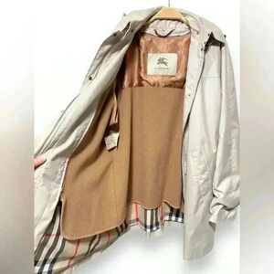 Burberry Women's Camel Hair Wool Removable Winter Liner Tan Trench Coat Size 14