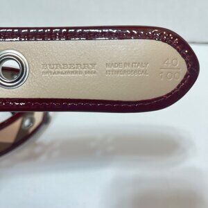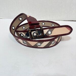 Burberry Women's Checkered Belt Size 40 Leather & Canvas Burgundy & Beige