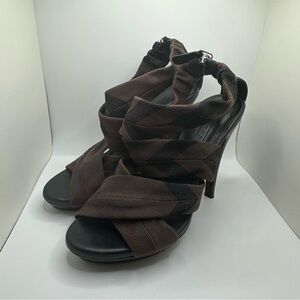 Burberry Women’s Dark Beige Nova Canvas Heels Vibram Soles US 8 EU 38