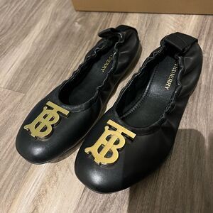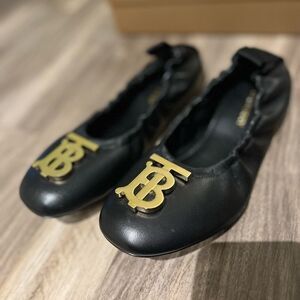 Burberry Women’s Laura Ballet Flats, Black Leather, Size EUR 36.5, Retail $720