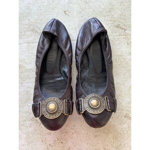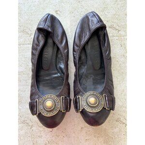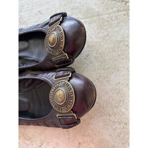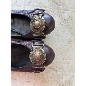 Burberry Womens Leather Ballet Flats With Gold Logo Buckle Brown Size 37