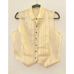 Size 12 -Burberry Women's Off-White Silk Pleated Bib Sleeveless Tuxedo Shirt / Vest in good condition!
