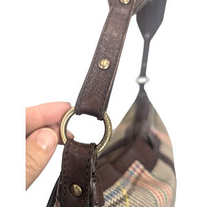 Burberry Womens Plaid Tweed Leather Top Strap Hobo Shoulder Handbag