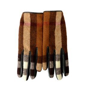 Burberry Women's "Victoria 3C CHK" Leather & Wool Check Gloves Sz 6.5