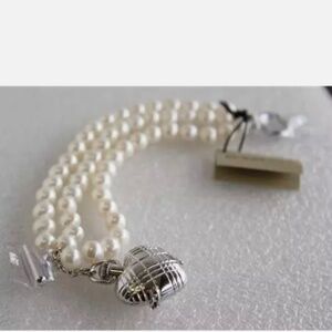 Burberry Women's White Pearl Bracelet Heart Watch Locket