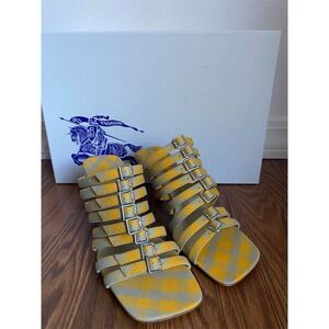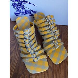 Burberry Women's Yellow Hunter Check Carmine Strap Heels Sandals 39/9
