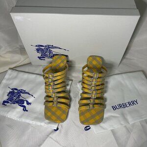 Burberry Women's Yellow Hunter Check Carmine Strap Heels Sandals Sz 38 EU NWT