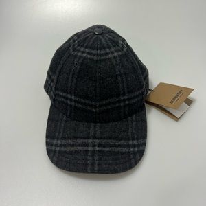 Burberry Wool Cashmere Blend Check Hat Baseball Cap Black Adjustable. New with tag.