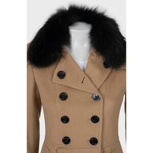 Burberry Wool Cashmere Coat Detachable Fur Collar UK6/XS