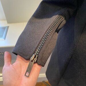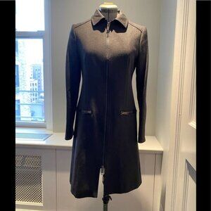 Condition: This Burberry Wool Tailored Coat is in great used condition. It features a chic and minimalist design with a dark gray color and stylish collar and zip details.