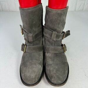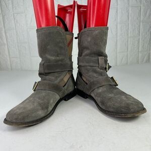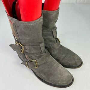 Burberry Worcester Women's Belted Suede Boot US 9 Gray Novacheck Moto Biker Boot