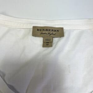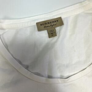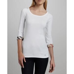 Burberry London XS White Scoop Neck T-Shirt Nova Check Cuffs 3/4 Sleeve Shirt