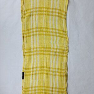 Stylish Burberry scarf with a yellow plaid pattern. Soft and elegant design.