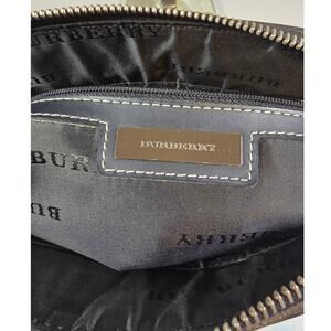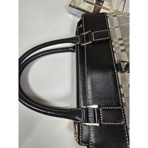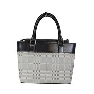 Burberry Zip Tote Grey/Black Cotton Check Handbag Leather Trim