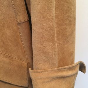 Beautiful barely worn Suede Jacket by Burberry of London. Lined, double zipper, folded cuffs, flapped pockets, invisible stitching. Impeccably tailored. Jacket is numbered. Natural unmarred Suede. This is a classic that will never go out of style. Three season, year round staple that is wonderful with jeans and boots or as a blazer for work. 32” long, sleeve length 23.” #Burberry #suedeblazer #luxury #classic