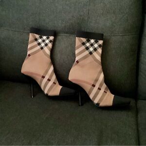 Details: knitted, no appliqués, designer's motif, unlined, square toeline, spike heel, leather sole, sock boots Boot length: 7.8 inches