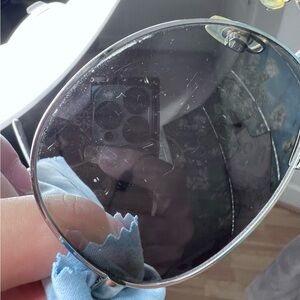 These chic Burberry, gray marbled, black lens aviator sunglasses are in good condition! The lens film is fading a bit (see photos).