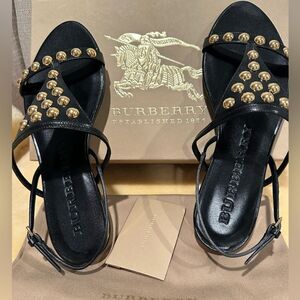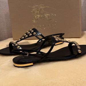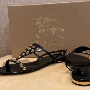 Burberry black studded leather bridle studs parnellflat sandal Sz EU38/ US7,5-8