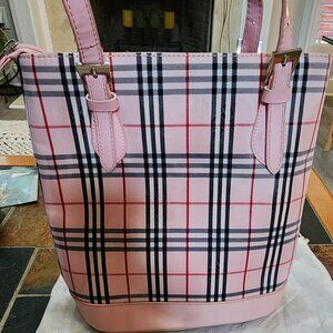 Burberry Blue label bag, shoulder or hand-carry in pink Haymarket plaid, pre-owned (used). Sale is final.