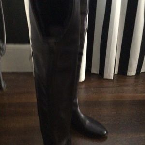 Like new . Burberry leather boots with shearling cuff. You van wear these over the knee or turned down .