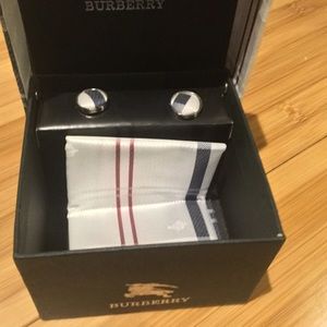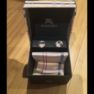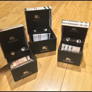 Three sets of Burberry brand new cufflinks/ handkerchief sets - all separate styles.