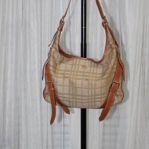 Burberry canvas body with leather trim shoulder bag. Vtg.