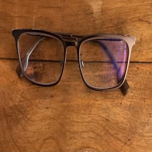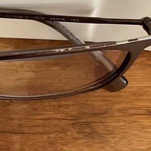 Burberry frame in a beautiful brown with some scratches on the top side. Comes complete with case, cleaning wipe, and original cardboard box