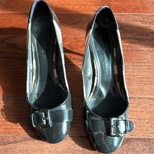 Overall good condition. They have some minor superficial cracking on the toe (pictured). These were resoled (with new heel tips) by Burberry and only worn a handful of times after. Size 38 1/2