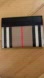 Burberry, new with tags, leather, striped card holder, neutral, leather, striped, gross screen, lining with card, slots, color, archive, beige, black, sand on icon stripe, height 3 inches with 4 inches depth .25, comes with original packaging and dust cloth, great gift, unisex