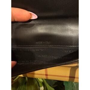 This is an authentic BURBERRY Supernova Check Wallet . This chic wallet is crafted of Nova check canvas with black leather. The wallet opens like a clutch to a matte black leather interior with card slots and exterior snap pocket.