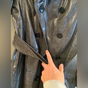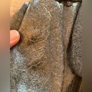 Please note this coat is new but has a few flaws. The polyamode coating on the interior collar stuck to the hangar so some of it has peeled. And there are some crinkles on the coat from storage but exterior has not peeled. Please see pics.