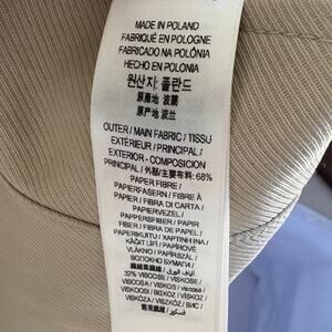 This off-centre canvas trench jacket offers a modern reinterpretation of a classic silhouette. Crafted in archive beige, the design features wide notch lapels, epaulettes, drop shoulders, and belted cuffs for a structured yet relaxed look. The asymmetric front button closure and straight hem add contemporary edge, while the viscose lining ensures comfort. Please note: this style runs big.