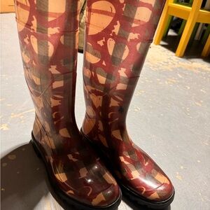 Almost new Burberry rain boots heart patterns. Rubber soles.