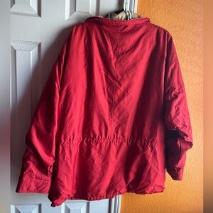 Elegant red inner gray fleece jacket with iconic Burberry plaid accents. Perfect for a sophisticated look.