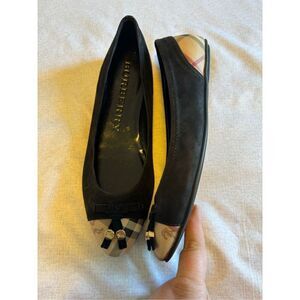 Burberry size 8.5 haymarket Yates black plaid ballet flats shoes - EUC