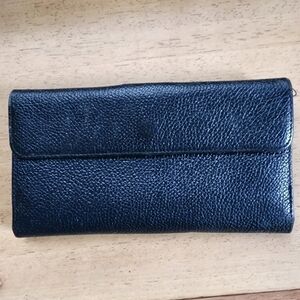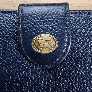 Burberrys vintage continental wallet. Burberry was originally known as burberrys until the name changed in 1999. This is a dark green/blue in color. Has the knight emblem on the front clasp and "burberrys" in gold printed interiorly.