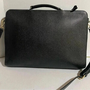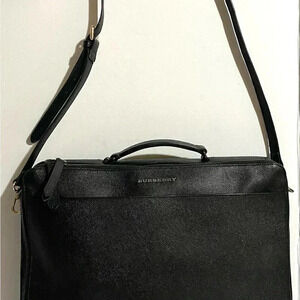 Burberry vintage Unsex leather briefcase with gunmetal hardware 2 compartments 3 pockets 1 zip closure 6 cards slots zip closure at top fabric & leather lining exterior have minor scratches marks shoulder strap is replaced not original Burberry strap double zipper hight 11” width 15” depth 2” strap drop 2” strap drop 26” adjustable The dimensions are based on approximately measurements before placing an order please check take a moment to view all photos using feature for a closer look The original shoulder strap is replaced but is added