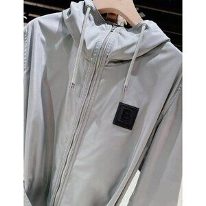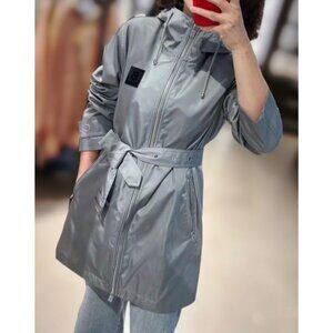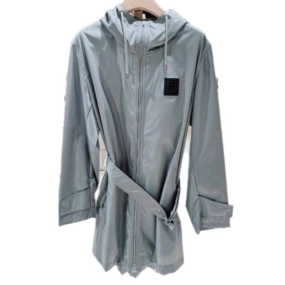 Burberry women’s Knighton Logo Patch Hooded Raincoat Cloud Grey US14 8061390