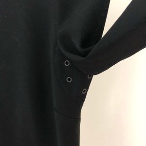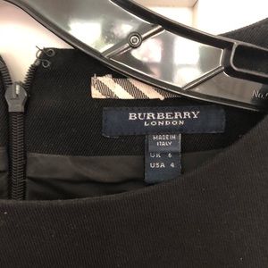 Burberry of London, made in Italy, little black wool dress. Lined in 100% rayon. Very flattering on the body. Has gusset details under the arm fixing range of motion as show in the photos. Size 4. Zipper back and hook and eye closure with beautiful seam detail. The perfect little black dress!