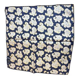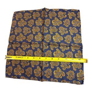 Burberry 100% Silk Paisley Print Pocket Square Handkerchief Navy & Gold Mens