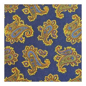 The Burberry pocket square in navy and gold paisley pattern is crafted from 100% silk. providing a sophisticated touch to men's formal wear.