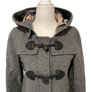 Burberry Brit Finsdale Gray Wool Duffle Hooded Toggle Closure Coat Size US 2