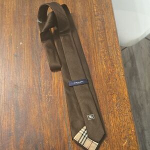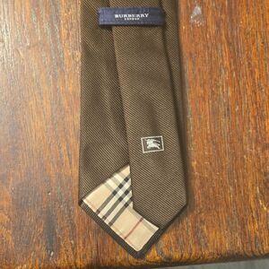 Elegant Burberry tie in a rich brown shade. Perfect for formal occasions.