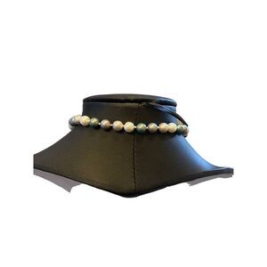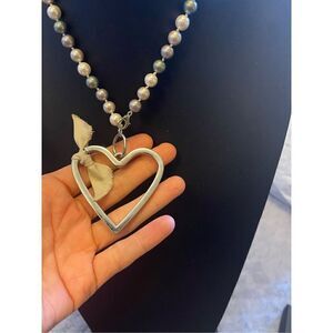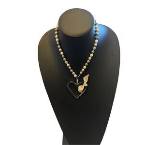 Burberry Charm on a NON-Brand 17 inch choker with faux cream/gray pearls. #Burberry #Authentic