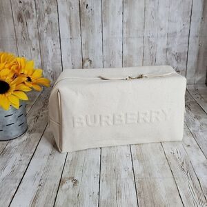 Burberry Cream Canvas Embossed Logo Makeup Pouch