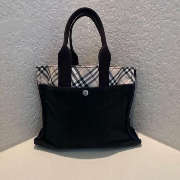 Burberry London Blue Label Nova Check Canvas Tote Black Tan Classic Print Preppy