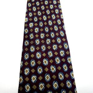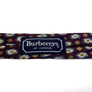 Burberry London Red Brown Beige Silk Tie Woven Short Geometric